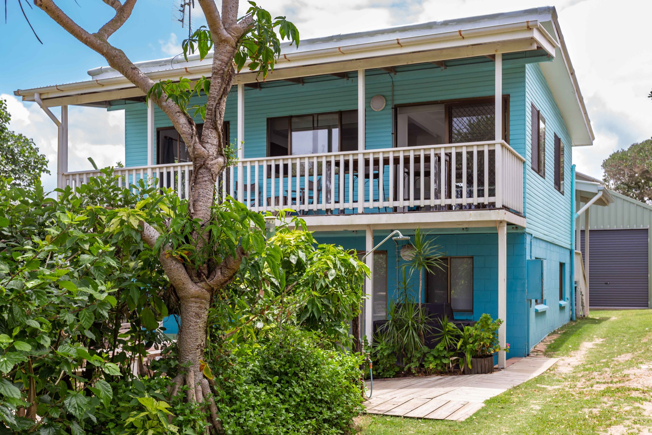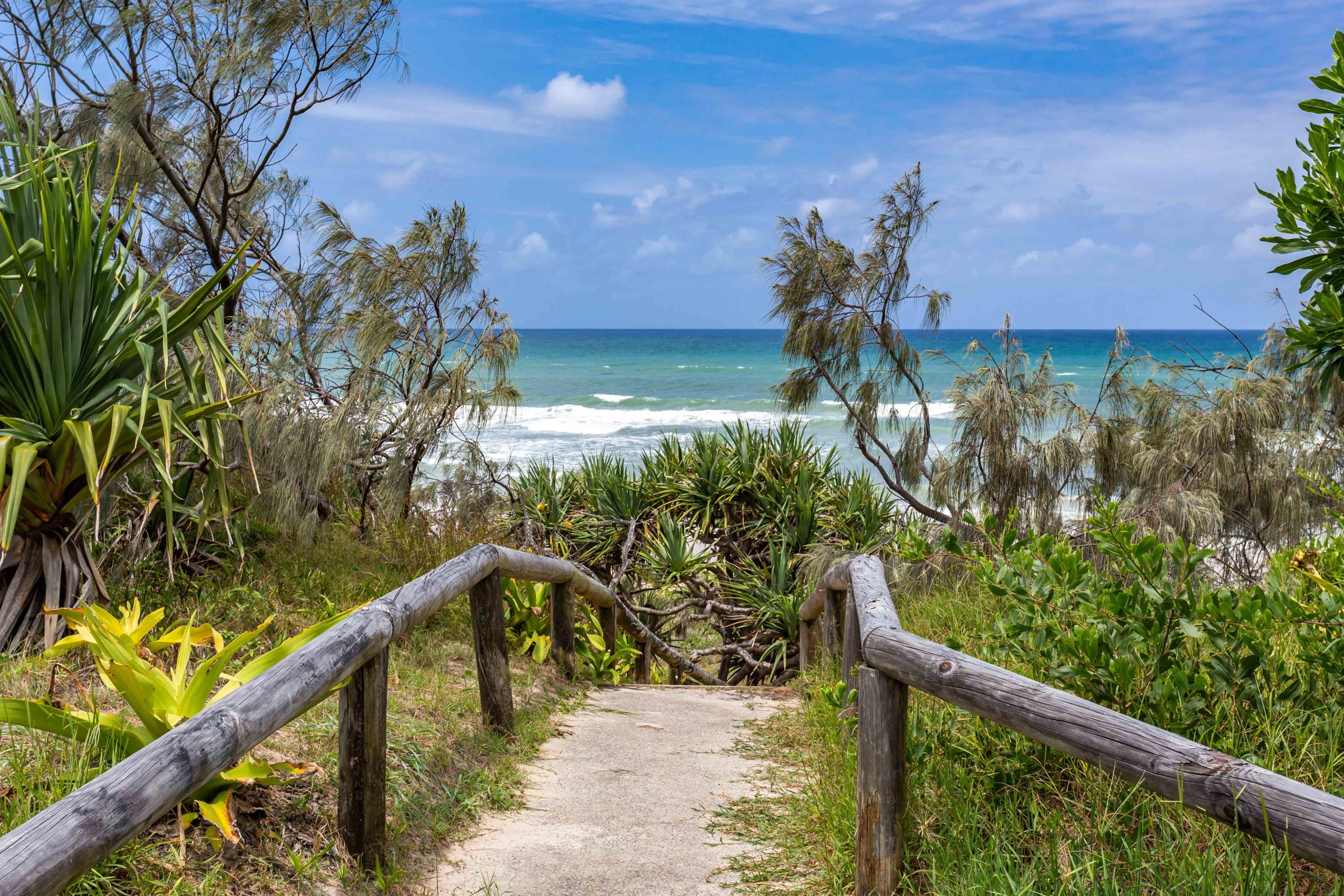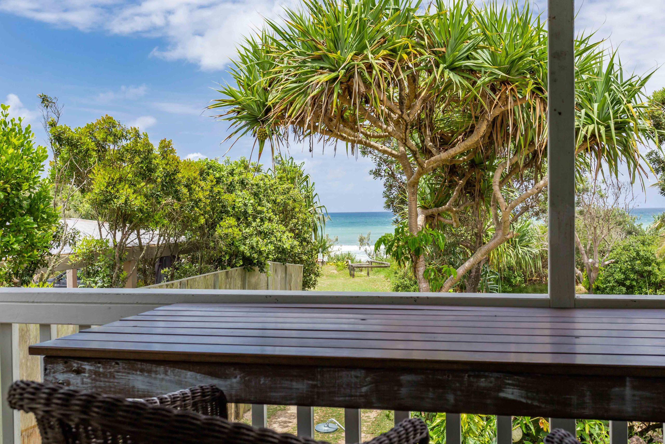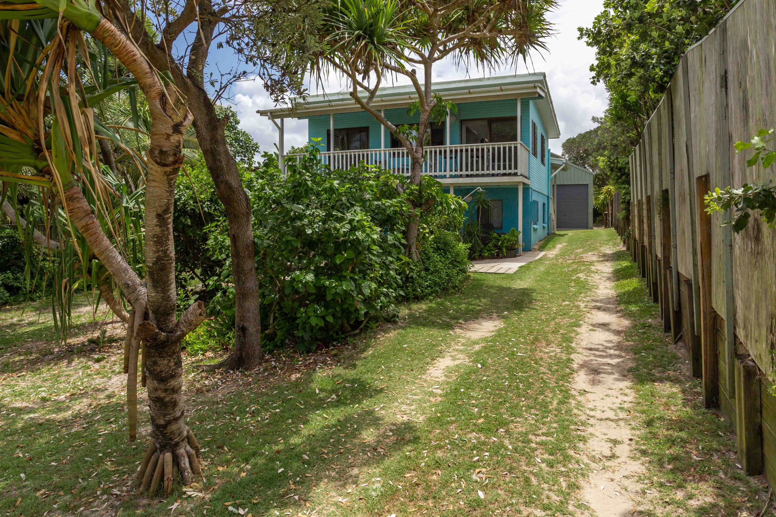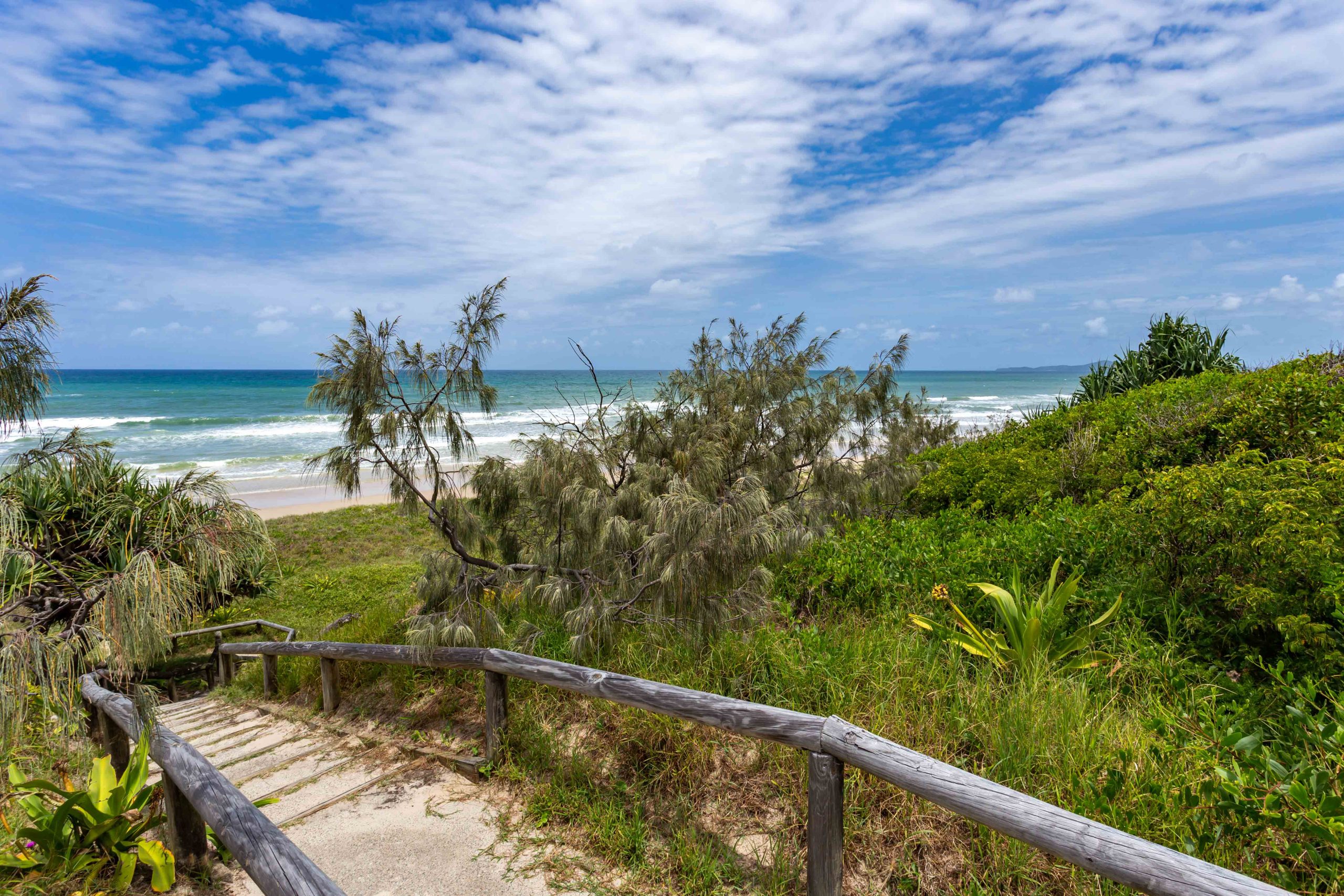 • Once on the beach drive approx 6kms north, turn into the Teewah Village, take the first right, The Esplanade, drive along and Cudvale is the 5th house on the left
