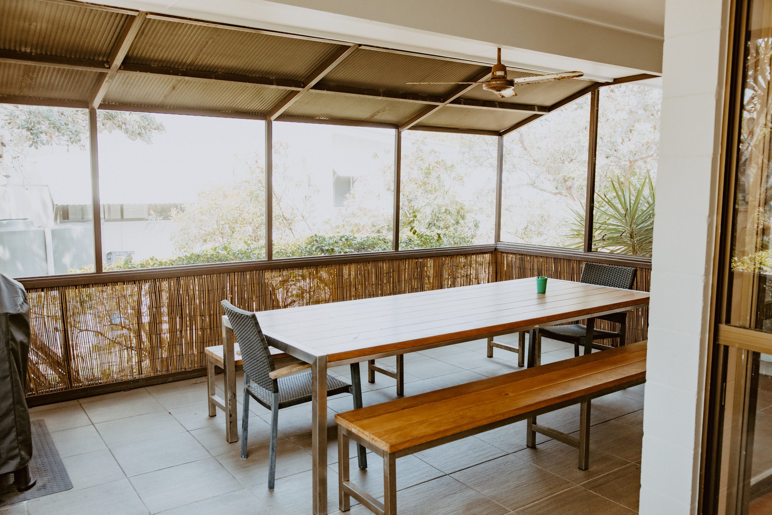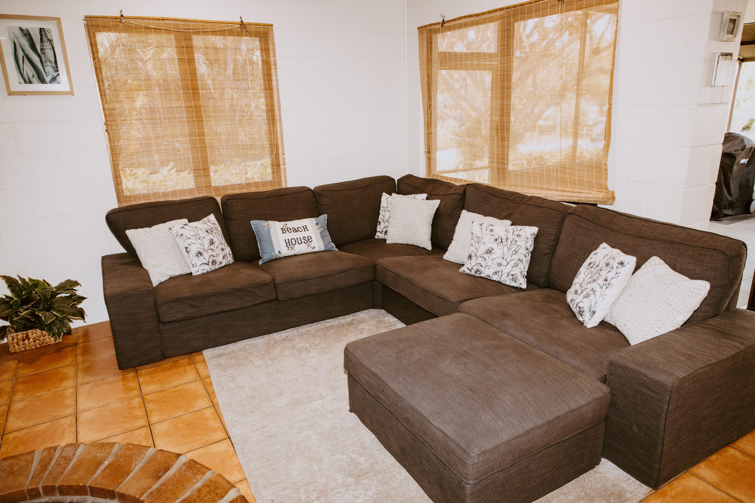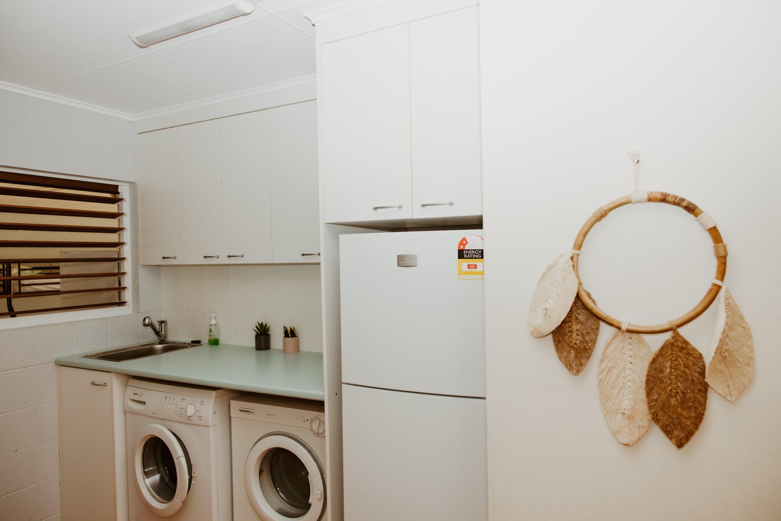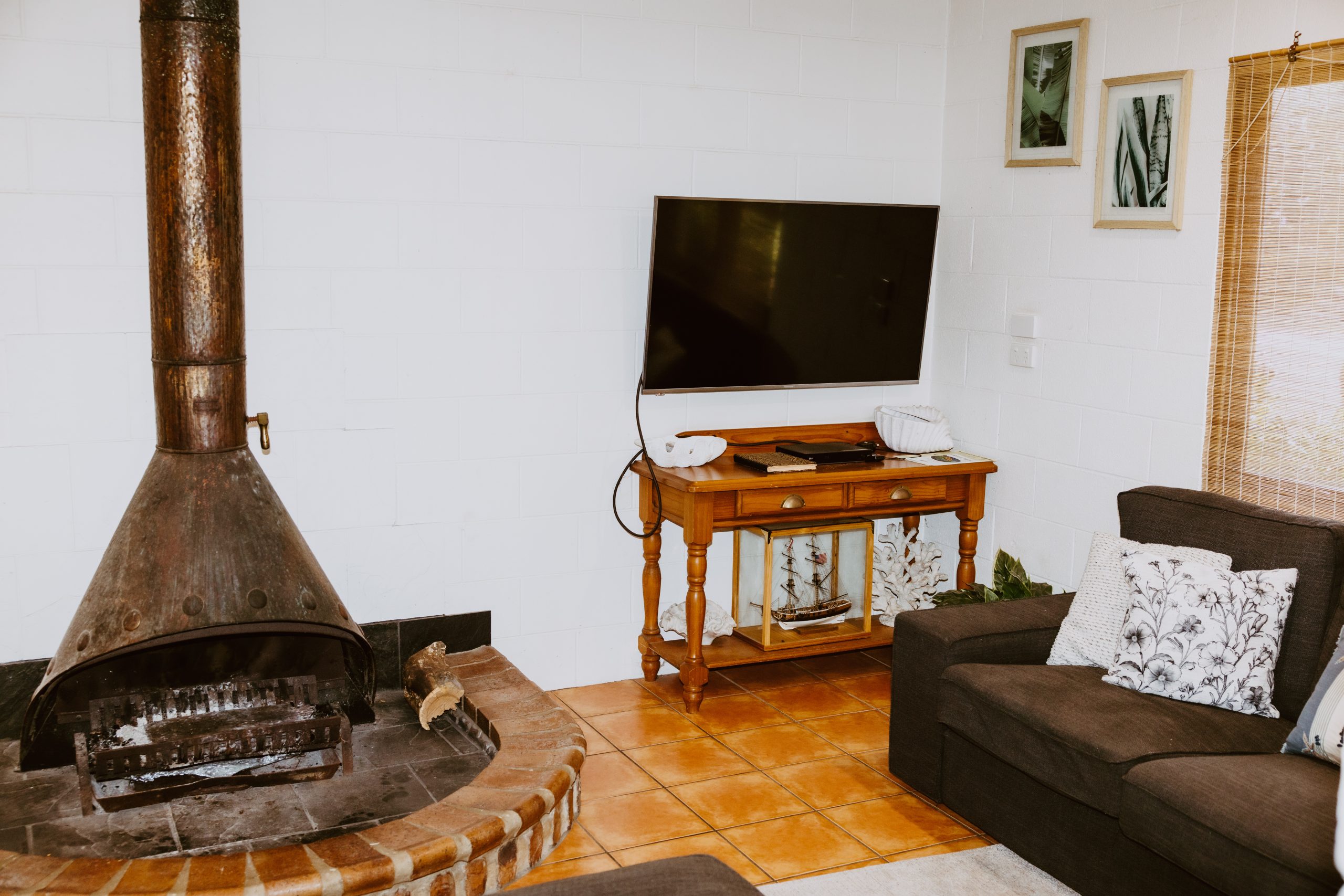 The fully equipped kitchen includes an air fryer, coffee machine, microwave, and two refrigerators, making meal prep a breeze. Ceiling fans are in two bedrooms and the bunk room, and the living area has a reverse cycle air conditioner for year-round comfort.