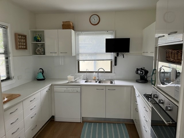 Full kitchen including dishwasher, microwave, coffee machine for ground coffee, blender, gas cooktop and electric oven. Large double door fridge, chest freezer and bar fridge.